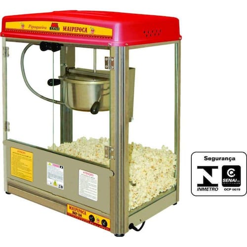- Estrutura em aço inox; - Carenagem em polímero termoformado de alta resistência; - Portas e vitrines em vidro temperado; - Panela basculante em aço cromado com tampa em inox, parte interna em alumínio; - Capacidade para 150 g de milho de pipoca; - Conjunto misturador estanhado; - Gaveta de resíduos em aço inox; - Resistência inferior com potência 200w blindada; - Resistência da panela com potência 1000w blindada; - Consumo 1,0 kw/hora; - Termostato para controle automático da temperatura; - Lâmpada para iluminação interna; - Fácil manuseio; - Tensão : 127-220V - 50/60Hz.