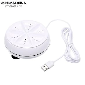 Máquina portátil de lavar roupa íntima meias panos lavadora pratica Esta mini máquina de lavar é ideal para quem deseja economizar tempo no dia a dia com um design compacto e portátil, você pode levá-la para onde preferir. Ela foi desenvolvida principalmente para lavar roupas leves e pequenas. É simples de usar: basta colocar a turbina em um recipiente com água, adicionar as roupas e os produtos de limpeza de sua preferência, e em seguida ligá-la na tomada.