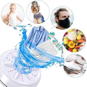 Esta mini máquina de lavar é ideal para quem deseja economizar tempo no dia a dia com um design compacto e portátil, você pode levá-la para onde preferir. Ela foi desenvolvida principalmente para lavar roupas leves e pequenas. É simples de usar: basta colocar a turbina em um recipiente com água, adicionar as roupas e os produtos de limpeza de sua preferência, e em seguida ligá-la na tomada.