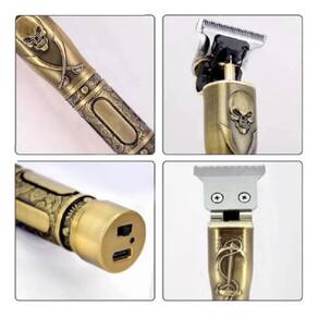 Descrição Barbeador De Cabelos Clipper T9 Elétrico Design Caveira Outras características Funções: Cortador de cabelo Tipo de alimentação: usb É sem fio: Sim É apta para viagem: Sim É apta para bebês: Não Inclui bateria recarregável: Sim Descrição 1. Única lâmina super afiada em forma de T para cortar o cabelo com segurança e rapidez. Você pode criar vários penteados retrô. 2. O desempenho poderoso do motor de cobre puro é estável e confiável 3. Aparência requintada, Caveira e fênix e padrão T-Blade. 4. Bateria embutida, longa vida útil. Adequado para carregamento por USB. 5. 2,5-3 horas de tempo de carregamento rápido; uma carga pode durar 120 minutos. 6. Cabeça de cerâmica de titânio 7. Ferramentas profissionais de barbeiro para uso doméstico. Adequado para cabeleireiros, homens Parâmetro: Marca Shinon Cor: Dourada Caveira Bateria: 1200mAh Potência: 5W Método de carregamento: carregamento USB elétrico Tempo de carregamento: 2,5-3 horas; Use o tempo: 2 horas Método de carregamento: Carregador Tensão: bivolt Peso: 0,4 kg Tamanho: 152mm 32mm Ean: 7899801918095