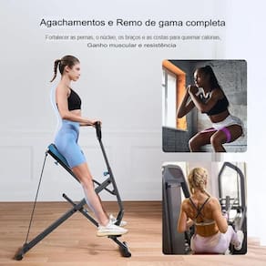 Características do produto: - Material: Estrutura em aço + plásticos reforçados - Função 2 em 1: Com essa máquina, você pode praticar agachamentos e remo, fortalecendo glúteos, coxas, abdômen, costas e ombros em um só aparelho. - Resistência ajustável: Modifique o nível de resistência para deixá-lo do jeito certo para você, seja iniciante ou avançado. - Máquina dobrável: A máquina dobra rapidamente para facilitar o armazenamento e o transporte. - Monitor LCD integrado: Monitore seu tempo, suas repetições e suas calorias queimadas. - assento Ergonômico: Assento acolchoado, garantindo conforto e segurança. - Apoios de pé com textura antiderrapante.