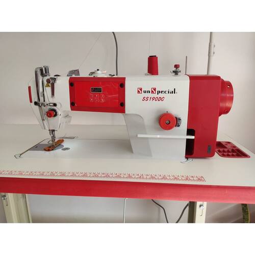 Especificações: Utilização: Industrial; Sistema de Transporte: Simples; Material: Leve e Médio; Velocidade: 5.000 PPM; Tipo de Ponto: Fixo; Tipo de agulha: DBx1; Número de Agulhas: 1 Agulha; Nº de fios: 2; Tamanho do ponto: de 0 a 5mm; Lançadeira: Pequena; Sistema de lubrificação: Automática; Altura do Calcador: 5.5//13 mm; Tipo/potência do motor: Direct drive 550W (Zero ruído); Voltagem: 110v Marca: Sun Special; Modelo: SS190-D-MQ