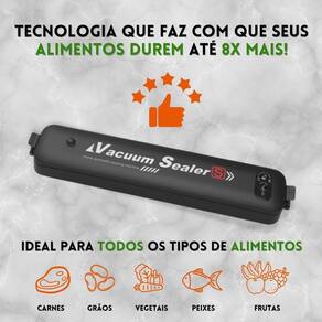 Máquina Seladora Vácuo Portátil Alimentos Embaladora Pratico C/10 Saquinhos Pratica P/Lar Descubra a revolução na conservação dos seus alimentos com a seladora de alimentos a vácuo chega de desperdício e alimentos estragados.Com nosso incrível dispositivo, você pode embalar a vácuo seus alimentos favoritos, mantendo o frescor, o sabor e a textura por muito mais tempo. Imagine abrir seu pacote de carne, frutas ou vegetais e sentir o aroma e a qualidade de um produto recém-comprado, mesmo após semanas de armazenamentoCom a seladora de alimentos a vácuo, você garante a preservação dos nutrientes essenciais,Prolongando a vida útil de seus alimentos e economizando dinheiro. Nossa seladora é fácil de usar e proporciona um selamento hermético e seguro.Com apenas um toque, você remove o ar e cria uma barreira protetora contra a deterioração. Além disso,O design moderno e compacto se encaixa perfeitamente em qualquer cozinha, trazendo praticidade e estilo. Seja para cozinheiros entusiastas, famílias ocupadas ou quem busca uma alimentação saudável, a seladora de alimentos a vácuo é o acessório indispensável.Não perca mais tempo, experimente a tecnologia de ponta em conservação de alimentos e faça parte daqueles que aproveitam ao máximo cada mordida Adquira agora a seladora de alimentos a vácuo e descubra o segredo para manter seus alimentos frescos, Caracteristicas:- possui um temporizador de selagem por calor controlado, totalmente automatizado, te dando ainda mais praticidade.- perfeita para alimentos, estudos comprovam que armazenar a vácuo ajuda reduzir a deterioração em até 8 vezes- mantenha os alimentos muito mais frescos, preservando o sabor e organização.- pode ser utilizada para armazenar diversos outros tipos de itens, como: roupas, acessórios, jóias, itens colecionáveis, etc...- proteção contra bactérias e fungos- ideal para todas as suas comidas: frutas, legumes, grãos, massas, carnes, peixes e vegetais.- reduz a deterioração e resíduos, evitando possíveis queimaduras no congelador. Especificações técnicas máquina embalar a vácuo portátil:- Utilize apenas sacos destinados a selagem a vácuo - 2 modos de funcionamento: somente selar embalagens e selar a vácuo sacos plásticos.- 2 modos de intensidade: normal e delicado para alimentos mais macios - compatível com sacos de até 25 cm de largura- potência: 90w- voltagem: 110v - 220v / bivolt-velocidade de vedação: 3 a 8seg-largura máxima de selagem: 30 cm-espessura do filme: 5-13-limite da pressão a vácuo: 0.08 mpa-largura de selagem: 2 milímetros Itens inclusos:1x maquina seladora embalagem a vacuo portatil doméstica1x cabo de energia da seladora10x sacos plásticos próprios para selagem a vácuo 25x7 cm extra 1x manual de instruções da seladora a vaccum Sobre os produtos: Dúvidas ou reclamações:- se tiver algum problema com seu produto nos contate via chat que faremos o maior esforço para deixa-lo satisfeito.Pedimos que não deixe reclamações ou qualificações negativas antes que resolvamos seu problema. Pós-venda- não tenha dúvidas nós vendemos bem para vendermos sempre conte com nosso atendimento sempre que precisar. Obrigado pela visita e boas compras