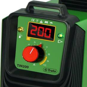 - faixa de amperagem de 20 a a 200 a; - arco de fácil abertura resultando numa soldagem estável e uniforme; - solda em corrente contínua eletrodos de até 4,00 mm; - baixo consumo de energia; - simples e fácil de usar; - menos faísca e fumaça; - compacta e portátil, além do baixo peso de 3,8 kg, possui alça para carregamento; - sistema de proteção contra superaquecimento; - pode ser utilizado como tig, utilizando tocha seca 9 mm a tocha seca não acompanha . A tin200 tem maior ciclo de trabalho: 110a - 100% 150a - 60% 200a - 40%