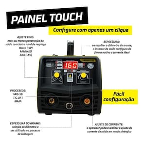 Maquina solda inversora mig 160a sem gás 3 em 1 tig eletrodo - super tork cimets-7160-220v A maquina solda inversora mig 160a sem gás 3 em 1 tig eletrodo - super tork cimets-7160-220v é uma ferramenta versátil e poderosa, projetada para realizar soldas de alta qualidade em diversos materiais. Processo mig sem gás: alta produtividade e facilidade de operação Processo tig-lift: possibilita a solda de chapas finas e proporciona melhor acabamento Processo mma eletrodo revestido: solda todos os tipos de eletrodos Função mig - sinergia eletrônica mig: regulagem automática de velocidade e tensão de solda mig Função mig - seleção de diametro do arame: permite ajustar o diâmetro do arame Função mig - ajuste fino de tensão/voltagem mig: possibilita a soldagem em chapas finas com precisão Função mma - hot-start automático: facilidade de abertura de arco elétrico com vários tipos e diâmetros de eletrodos Função mma - arc-force automático: controle de estabilidade de arco inteligente Função mma - anti-sticking automático: não cola o eletrodo na peça de trabalho - características: Tipos de máquina de solda: mma, mig sem gás, tig Amperagem máximo: 160 a Com display digital: sim Com tecnologia inverter: sim Ciclos de trabalho: 60% Ligação: tomada 20a Frequência: 50/60hz Voltagem: 220v Corrente de entrada maxíma: 25a Corrente de entrada eficiente: 19.3a Potência: 5.500w Tensão no vazio: 65v Amperagem mínima: 15a Amperagem máxima: 160a Capacidade do alimentador kg : 1kg Consumível mma: 2.0 2.5 3.2 4.0 Consumível mig: 0.6 0.8 0.9 1.0 Consumível tig: 1.6 2.0 2.4 3.2 Conector: 9mm + plug 2 vias Dimensões: 310 x 160 x 180mm Peso: 3,800 kg Mma - eletrodos revestidos: aço carbono, aço inox, ferro fundido, alumínio, metalon, perfil metálico, chapas automotivas, carrocerias, estruturas metálicas entre outros materiais ferrosos Tig dc: aço carbono, aço inox, ferro fundido, metalon, perfil metálico, chapas automotivas, carrocerias, estruturas metálicas entre outros materiais ferrosos Mig sem gás: aço carbono, metalon, perfil metálico, chapas automotivas, carrocerias, estruturas metálicas entre outros materiais ferrosos - itens inclusos: 1kg arame 0.8 mm, 2 esquadros magnéticos, bateria, eletrodo 2.5mm, escova removedora, garra do terra, lentes, máscara de solda 4k, porta eletrodo, roldana, tocha mig - : 3 anos de de fábrica. Marca: super tork Modelo: cimets-7160-220v Código de barra: 7898533565324 Imagens meramente ilustrativas, podendo sofrer pequenas alterações. Todas as informações divulgadas são de responsabilidade do fabricante/fornecedor