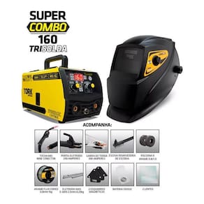 Maquina solda inversora mig 160a sem gás 3 em 1 tig eletrodo - super tork cimets-7160-220v A maquina solda inversora mig 160a sem gás 3 em 1 tig eletrodo - super tork cimets-7160-220v é uma ferramenta versátil e poderosa, projetada para realizar soldas de alta qualidade em diversos materiais. Processo mig sem gás: alta produtividade e facilidade de operação Processo tig-lift: possibilita a solda de chapas finas e proporciona melhor acabamento Processo mma eletrodo revestido: solda todos os tipos de eletrodos Função mig - sinergia eletrônica mig: regulagem automática de velocidade e tensão de solda mig Função mig - seleção de diametro do arame: permite ajustar o diâmetro do arame Função mig - ajuste fino de tensão/voltagem mig: possibilita a soldagem em chapas finas com precisão Função mma - hot-start automático: facilidade de abertura de arco elétrico com vários tipos e diâmetros de eletrodos Função mma - arc-force automático: controle de estabilidade de arco inteligente Função mma - anti-sticking automático: não cola o eletrodo na peça de trabalho - características: Tipos de máquina de solda: mma, mig sem gás, tig Amperagem máximo: 160 a Com display digital: sim Com tecnologia inverter: sim Ciclos de trabalho: 60% Ligação: tomada 20a Frequência: 50/60hz Voltagem: 220v Corrente de entrada maxíma: 25a Corrente de entrada eficiente: 19.3a Potência: 5.500w Tensão no vazio: 65v Amperagem mínima: 15a Amperagem máxima: 160a Capacidade do alimentador kg : 1kg Consumível mma: 2.0 2.5 3.2 4.0 Consumível mig: 0.6 0.8 0.9 1.0 Consumível tig: 1.6 2.0 2.4 3.2 Conector: 9mm + plug 2 vias Dimensões: 310 x 160 x 180mm Peso: 3,800 kg Mma - eletrodos revestidos: aço carbono, aço inox, ferro fundido, alumínio, metalon, perfil metálico, chapas automotivas, carrocerias, estruturas metálicas entre outros materiais ferrosos Tig dc: aço carbono, aço inox, ferro fundido, metalon, perfil metálico, chapas automotivas, carrocerias, estruturas metálicas entre outros materiais ferrosos Mig sem gás: aço carbono, metalon, perfil metálico, chapas automotivas, carrocerias, estruturas metálicas entre outros materiais ferrosos - itens inclusos: 1kg arame 0.8 mm, 2 esquadros magnéticos, bateria, eletrodo 2.5mm, escova removedora, garra do terra, lentes, máscara de solda 4k, porta eletrodo, roldana, tocha mig - : 3 anos de de fábrica. Marca: super tork Modelo: cimets-7160-220v Código de barra: 7898533565324 Imagens meramente ilustrativas, podendo sofrer pequenas alterações. Todas as informações divulgadas são de responsabilidade do fabricante/fornecedor