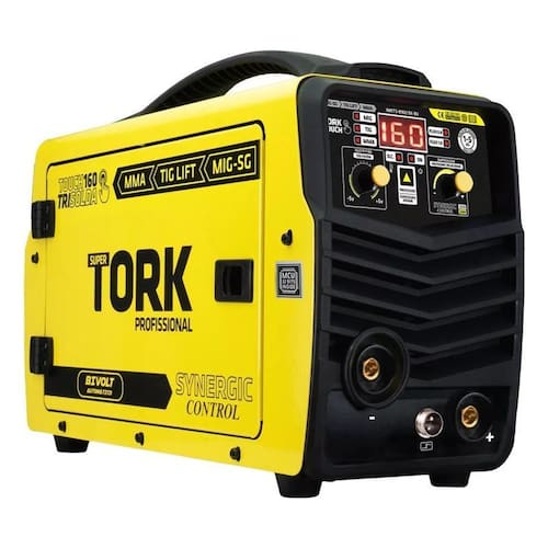 Maquina solda inversora mig sem gás 160a mma tig trisolda 50/60hz tork 127/220v Máquina de solda inversora mig sem gás 160a mma tig trisolda Super tork touch 160 trisolda - compacta, versátil e de alta tecnologia Processos de soldagem: Mig sem gás: ideal para soldagem de chapas automotivas e estruturas metálicas. Tig: acabamento superior em chapas finas. Mma eletrodo revestido : alta versatilidade para diferentes materiais. Profissionais e iniciantes, permitindo soldar com qualidade mesmo sem experiência prévia. Cor: amarelo, com design robusto e prático. - características: Frequência: 50/60 hz Voltagem: 127/220v bivolt automático Potência: 6.400w Amperagem: 20a 160a Ciclo de trabalho: 60% Diâmetro do arame: Mínimo: 0,6 mm Máximo: 1,0 mm Diâmetro do eletrodo: até 4 mm Materiais soldáveis: aço, chapa, aço inox, alumínio Peso: 4,2 kg Classe de isolamento: classe f Dimensões: compacta e fácil de transportar com alça integrada. Proteção: contra sobrecarga e função anti-stick. - itens inclusos: Garra negativa Porta eletrodo Manual do usuário Roldana de tração 0.8/1.0 Tocha mig nine-conector - : 1 ano de fabricante Marca: super tork Modelo: touch 160 trisolda imets-8160-5k-bv Código de barra: 7898533564846 Imagens meramente ilustrativas, podendo sofrer pequenas alterações. Todas as informações divulgadas são de responsabilidade do fabricante/fornecedor Marca: Não Informado