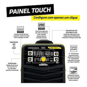 Para o processo MIG-MAG, é possível soldar com gás e sem gás, função SPOT, Indutância eletrônica, função Burbank e a sinergia eletrônica facilita a operação do equipamento. Conta com Painel de LED que garante maior conforto e precisão ao soldador com informações claras e vivas, mesmo em ambientes escuros.