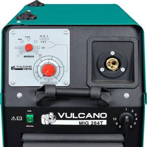 A fonte de soldagem MIG/MAG Vulcano MIG 284T oferece estabilidade do arco elétrico em todas as faixas de corrente, com regulagem precisa por comutador de múltiplas faixas. Completa em recursos para conforto operacional, inclui tracionador de 4 roletes, controle linear de velocidade e compartimento interno para o rolo de arame. Recomendada para soldagem de aço de baixa e alta liga, alumínio, e cobre, atendendo a diversas aplicações. Ideal para profissionais exigentes, possui características técnicas avançadas, como rodízios de borracha, ventilação forçada e suporte de gás rebaixado.