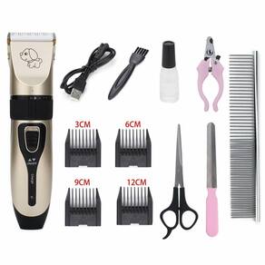 1 máquina de tosa pet 1 cabo usb para carregamento 4 pentes de tosa 3mm, 6mm, 9mm, 12mm 1 tesoura cor cinza, pode variar 1 alicate de unha 1 lixa de unha 1 pente de alumínio 1 manual em português 1 escovinha para limpeza 1 óleo lubrificante 1 lâmina extra cor cinza, inclusa