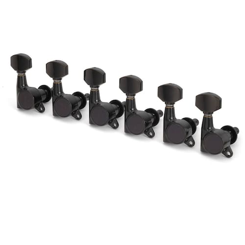 - Esses sintonizadores de 6 em linha populares e isentos de manutenção com botões no estilo Schaller têm botões menores do que os sintonizadores 3L/3R, então todos cabem confortavelmente em um lado do cabeçote