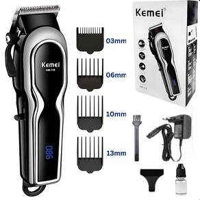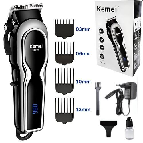 Maquininha kemei km-119 alta precisão display digital Descrição do anúncio: Conteúdo da embalagem: 1 máquina de cortar cabelo profissional kemei km-119 4 pentes de tamanhos variados 1mm, 2mm, 3mm e 4mm 1 cabo de carregamento 1 escova de limpeza 1 óleo lubrificante Características: 4 pentes de tamanhos variados: para atender a todas as necessidades de estilo e comprimento de cabelo. Corte preciso e uniforme: lâminas afiadas de cromo chapeado para um corte suave e sem falhas. Uso flexível: pode ser Utilizado com ou sem fio, oferecendo mais praticidade. Tempo de uso prolongado: até 240 minutos de uso contínuo após carregamento completo. Design ergonômico: facilita o manuseio e proporciona conforto durante o uso. Especificações: Marca: kemei Modelo: km-119 Material da lâmina: cromo chapeado de aço Tamanho do produto: 180 x 45 mm Peso líquido: 0.72 kg Cor do produto: prata Voltagem: bivolt 110v-220v Tensão do motor: 3.7 v Potência do corpo: 1w Tipo de : de impulso Velocidade do motor: 6800 rpm Método de uso: recarregável/usar direto na tomada Indicador led: sim Capacidade da bateria: 2600mah Tempo de carregamento: cerca de 3 horas Tempo de uso: cerca de 60 min Uso indicado: para todas as pessoas Principais perguntas sobre o produto e respostas: 1 qual é a autonomia da máquina após a carga completa A kemei km-119 oferece até 240 minutos de uso contínuo após o carregamento completo. 2 a máquina é adequada para uso doméstico e profissional Sim, a kemei km-119 é projetada para oferecer cortes de alta qualidade, tanto para uso doméstico quanto profissional. 3 a máquina pode ser Utilizado sem fio Sim, a kemei km-119 pode ser Utilizado com ou sem fio, proporcionando flexibilidade de uso. 4 quais são os tamanhos dos pentes incluídos O produto vem com pentes de 3mm, 6mm, 10mm e 13mm, atendendo a diferentes necessidades de estilo e comprimento de cabelo. 5 como faço para manter a máquina em boas condições É recomendável manter a máquina em um ambiente seco e aplicar regularmente o óleo lubrificante nas lâminas. Além disso, use a escova de limpeza inclusa para remover resíduos após o uso. Marca: Não Informado
