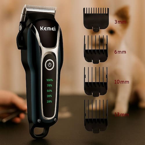 Maquininha Kemei Pet Leve Com Kit Para Tosa Maquininha Tosadora Cachorros s/ Fio Máquina Tosa de Pet Kemei 1991 Bivolt Os animais também se incomodam com pelos e unhas grandes, e com a Kemei 1991 você corta e apara unhas e pelos sem grandes problemas. Seja para uso em casa ou em ambiente , a Kemei 1991 oferece alta performance, permitindo manter seu Pet sempre limpo e confortável. Possui uma tela LCD digital que ajuda a verificar o estado da bateria durante o carregamento ou operação, mantendo você sempre informado. O aparelho opera com baixo ruído, o que contribui para não assustar ou causar medo no animal, proporcionando uma tosa segura. Características Técnicas Sem Fio Tensão: Bivolt Potência: 5W Lâminas de aço inoxidável Lâmina ajustável para comprimento de corte de 0,5 mm para 1,0 mm Nível de acabamento ajustável Motor de alta velocidade Rotação rápida Operação estável Sem aquecimento Tempo de carregamento: Aproximadamente 3 horas Autonomia da bateria: Até 120 minutos de uso contínuo 4 pentes guia: 3mm / 6mm / 10mm / 13mm Tensão Entrada V : 5V Corrente mA : 1000mA Itens Inclusos - 1 Máquina Km-1991 - 1 Fonte BiVolt - 4 Pentes Guia - 3,6, 10 e 13mm - 1 Bisnaga com Silicone - 1 Pente - 1 Cortador de unhas - 1 Lixa - 1 Manual do usuário Dúvidas Frequentes - A máquina é adequada para Pets de médio e grande porte Sim, é eficaz em animais de qualquer tamanho devido ao ajuste de altura e aos 4 pentes guia. - O produto é resistente É feito com materiais de alta qualidade e durabilidade. Marca: Não Informado