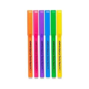 - 6 cores neon; - Formato slim que cabe em qualquer estojo; - Composição: componentes termoplásticos, tinta à base de água; - Tecnologia anti ressecamento até 48h; - Ponta: 2-4mm; - INMETRO: 006191/2018.