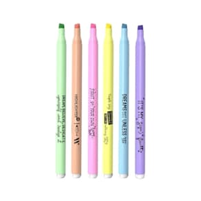 - 6 cores pastel; - Formato slim que cabe em qualquer estojo; - Composição: componentes termoplásticos, tinta à base de água; - Tecnologia anti ressecamento até 48h; - Ponta: 2-4mm; - INMETRO: 005157/2022.