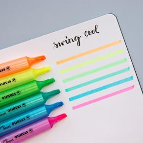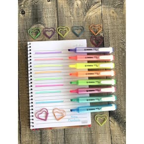 Por ser menor e mais fino, esse marcador vai te ajudar a grifar pequenos textos. Possui um clip no corpo, você prende no material e sai sem medo de ser feliz!