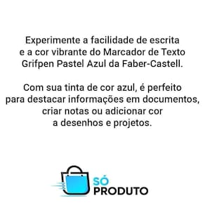A faber-castell apresenta seu novo marcador de texto. Leve e fácil de usar, ele é perfeito para destacar anotações e assinalar interesses em textos. Fabricado pela renomada marca faber castell, ele oferece durabilidade graças à sua tecnologia avançada. O marcador de texto grifpen é a escolha ideal para aqueles que buscam uma forma prática e eficiente de destacar informações importantes. Com uma cor vibrante e duradoura, ele é perfeito para uso diário e também pode ser para presentear alguém especial. Em resumo, o marcador de texto grifpen é a solução perfeita para destacar anotações e assinalar interesses em textos com eficiência e estilo. Experimente já as imagens são meramente ilustrativas. Marca: Não Informado