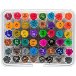 O Dual Marker é uma linha de marcadores à base de álcool indicados tanto para uso artístico quanto para estudantes e profissionais. Permanentes e muito versáteis, podem ser aplicados em cartões, plásticos, cerâmicas, madeiras, metais e papéis - preferencialmente de gramaturas altas ou próprios para marcadores.