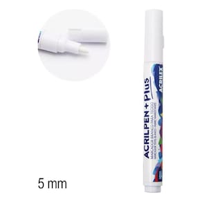 A acrilpen plus é uma caneta marcadora branca ideal para personalização de tecidos. Perfeita para criar detalhes e acabamentos em peças escuras, sua tinta de alta qualidade garante durabilidade e resistência às lavagens. Com ponta precisa, é fácil de manusear e permite traços firmes, tornando-a uma excelente escolha para artesãos e amantes de diy.