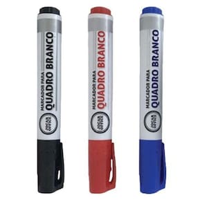 Composição: resina termoplástica, ponta de fibra e tinta à base de corantes e solventes.