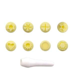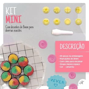 O Kit Mini vem com desenhos muito fofinhos que podem ser usados em diversas ocasiõs, entre os desenhos estão: Coração, estrelas, bola, etc.. Ele conta com 8 carimbos e um cabo. Com cabo para encaixar Tamanho da marcação: 8mm