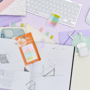 Ideal para marcar páginas, escrever notas e organizar ideias, o Marcador de Página Adesivo Pastel Trend Jocar Office é reposicionável, tem 24 folhas de cada cor pastel e estojo protetor de plástico.