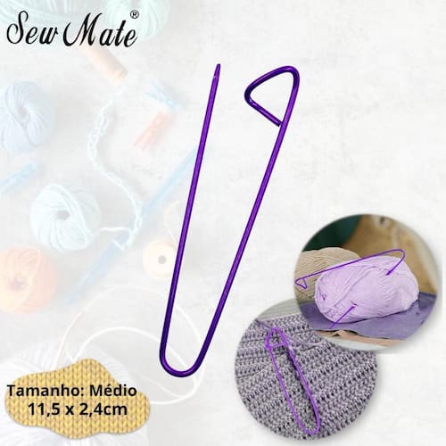 Marcador de Ponto Sew Mate Alfinete de Segurança Médio Marcador de Ponto Sew Mate Alfinete de Segurança Médio é fundamental para tricoteiras os , pois permite que os pontos fiquem à espera, de forma segura e prática. Feito de metal, é leve e fácil de manusear.