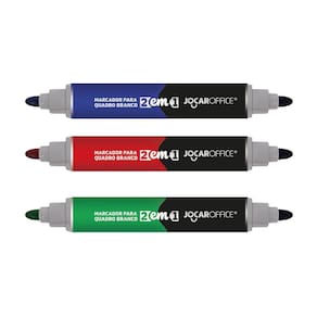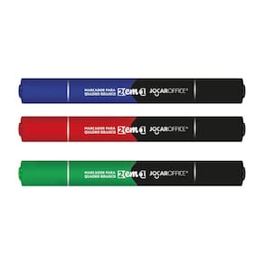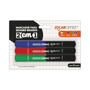 O Marcador para Quadro Branco 2 em 1 Jocar Office com 3 Unidades é uma solução versátil que permite alternar entre duas cores vibrantes com apenas um simples giro dos dedos. Com este marcador, você terá não apenas uma, mas duas tonalidades em cada caneta, p roporcionando flexibilidade e versatilidade inigualáveis em suas apresentações, reuniões e brainstormings. Seja para destacar inform ações cruciais, criar gráficos impactantes ou simplesmente dar vida ao seu quadro branco, a caneta de quadro branco oferece o desemp enho e a qualidade que você merece.Uma das características deste pincel de quadro branco Jocar Office é sua ponta redonda qu e permite um traço de 1-3 mm. Isso significa que você terá total controle sobre a espessura das linhas que deseja criar, garantindo uma escrita firme e precisa. Não importa se você está escrevendo em um quadro branco grande durante uma apresentação importante ou t rabalhando em um projeto criativo em casa, nossa caneta atenderá às suas necessidades com perfeição. Com o Marcador para Quadro Bran co 2 em 1 Jocar Office, você pode alternar sem esforço entre cores diferentes, tornando seus gráficos e informações ainda mais impac tantes. Seja para destacar estatísticas, criar gráficos de tendências ou apenas adicionar um toque de cor ao seu material, nossos ma rcadores estão aqui para ajudar.Além da qualidade inigualável, os marcadores de quadro branco também são duráveis e econômic os. Cada conjunto vem com 3 unidades, garantindo que você tenha o suficiente para todas as suas necessidades de escrita e desenho em quadros brancos. E quando a tinta começar a acabar, não se preocupe. Temos recargas disponíveis para que você possa continuar usand o a sua caneta de quadro branco por muito tempo. Transforme seus quadros brancos em telas vibrantes de criatividade e conquiste sua audiência com cores e clareza excepcionais. Ean: 7897256241409