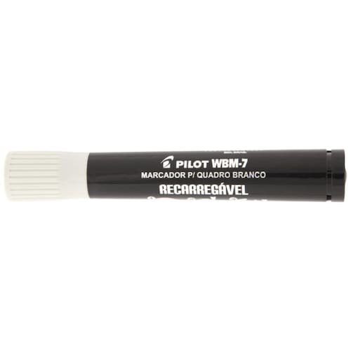 Marcador Para Quadro Branco Recarregável WBM-7 Preto Pilot Desenvolvido para o uso em quadro branco, possui ponta de acrílico que não danifica o quadro e tinta especial que apaga facilmente sem provocar manchas. Além disso, é recarregável com tinta Pilot para marcador WBM-7, basta abrir a tampa no final do corpo e recarregar. Características: Ponta de acrílico de 4,0mm Espessura da Escrita : 2,0mm Cor: Preto Marca: Pilot Marca: Não Informado Ean: 07897424081394