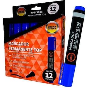 36 marcador permanente top preto - jocar office 3 caixas = uma caixa de cada cor Composição: resina termoplástica, ponta de fibra e tinta à base de corantes e solventes. Trabalhamos com responsabilidade e dedicação. Entregamos 100% das mercadorias no prazo. Estamos no ramo ha mais de 35 anos. Nossas embalagens são todas de qualidade e nossos embaladores são ótimos profissionais. Só trabalhamos com marcas . Caso compre depois desse horário enviamos somente no dia seguinte. Descrição: Cores: preto // azul // vermelho Altura: 125mm. Diâmetro: 18mm. Marca: jocar office Quantidade: 36 unidades no total = cada caixa com 12 unidades Características do produto: Corpo com novo design. Tinta permanente. Ponta chanfrada 4,5mm. Atóxico.