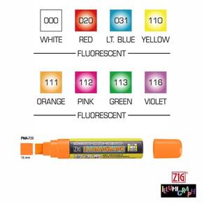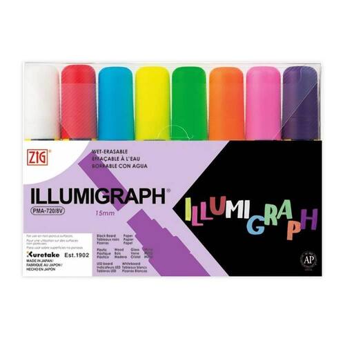 O Marcador Zig Illumigraph é um marcador flexível que foi idealizado para destacar superfícies com suas fortes cores fluorescentes fazendo dele o companheiro inseparável de todo artista. Possui tinta com formulação a base de água, inodora e livre de xileno, tornando possível a sua utilização em espaços fechados como estúdios e ateliês.