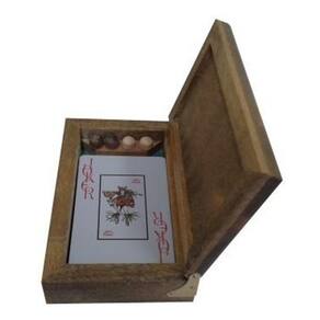 Confeccionado em Madeira de Lei Maciça com Marcador na Tampa e Baralho guardado no seu interior.