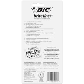 - Torne a organização divertida e fácil com os marcadores BIC Brite Liner. Esses marcadores têm uma ponta de cinzel para realçar de forma ampla ou sublinhada fina, o que os torna perfeitos para destacar documentos escolares ou de escritório. Os marcadores de texto da BIC usam tinta translúcida para enfatizar o que é importante na página sem obscurecer o texto abaixo. Confiável e duradouro, cada marcador BIC Brite Liner grava por até oito horas sem tampa e não seca, para que você possa trabalhar com confiança. A
