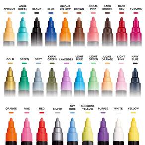 29 marcadores Posca médios de 5 m com pontas reversíveis, conjunto de canetas de tinta acrílica para materiais de arte, tinta para tecido, marcadores de tecido/arte - Pontas reversíveis