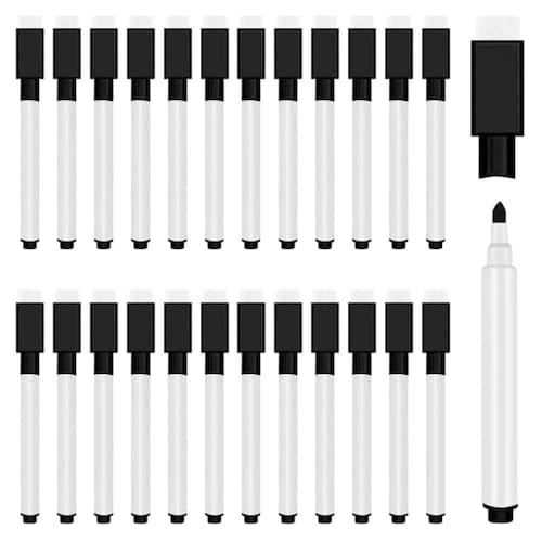 25 unidades de marcadores magnéticos pretos apagáveis a seco com tampa de borracha, quadro branco, mini marcadores apagáveis a seco a granel, marcadores de quadro branco para estudantes com ponta fina para crianças, professores, material escolar de escritório