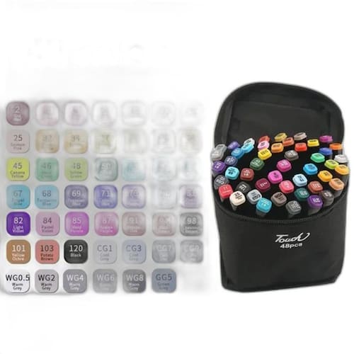 Marcadores de ponta dupla de álcool de 48 cores, canetas marcadoras de arte com porta-canetas, conjunto de marcadores Kit canetinhas permanentes e ponta dupla com 48 cores As canetinhas coloridas escolares com ponta dupla são perfeitas para estudantes, artistas e amantes de colorir que buscam qualidade e versatilidade em seus projetos. O estojo contém 48 cores vibrantes, este conjunto atende desde o esboço mais delicado até as criações mais audaciosas. Ideal para a expressões artísticas. Tampas codificadas por cores e caixa bônus: as tampas codificadas por cores da caneta ponta dupla permitem facilidade na organização e identificação rápida das cores. O design ergonômico das canetas coloridas facilita o trabalho com o kit canetas coloridas por muito tempo. Equipado com um belo estojo de transporte preto perfeito para viajar e armazenar. Especificações técnicas: Quantidade: estojo com 48 canetinhas de ponta dupla. Cores: 48 cores únicas, incluindo cores primárias e complementares. Tipo de ponta: dupla fina e grossa para versatilidade nos traços. Base da tinta: à base de água, inodoro e não tóxico. Características de segurança: secagem rápida, livre de ácido, pode ser por crianças. Qualidade e durabilidade: desenvolvidas para oferecer uma experiência de escrita suave, essas canetinhas possuem tinta de alta qualidade que evita manchas. O design ergonômico das canetas permite longos períodos de uso sem desconforto. As tampas codificadas por cores facilitam a organização e identificação rápida dos marcadores. São ideais para diversos tipos de arte, incluindo desenho técnico como arquitetura , moda, mangá e coloração de mandalas. Elas também se tornam uma ótima opção para presentes criativos em datas especiais. Dimensões: Altura: 16cm Comprimento: 14cm Largura: 10cm Itens inclusos: 48 canetinhas coloridas com ponta dupla Marca: Não Informado