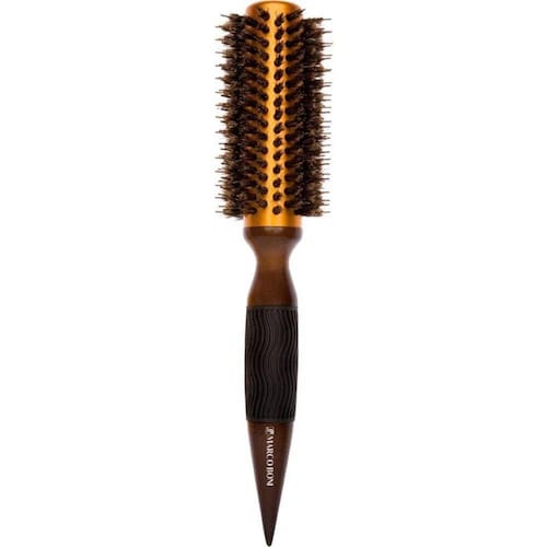 Produto 100% Original Marco Boni. Escova de cerdas naturais de Javali (reduz o volume) e Nylon de pontas arredondadas com acabamento em Metal Alumínio, Madeira e Borracha. Ideal para todos os tipos de cabelos, sejam eles para secar, alisar, modelar e finalizar. Corpo da escova revestido em alumínio. Auxilia na absorção e propagação do calor do secador agilizando a secagem,Cerdas Dupla Altura de Nylon e Javali proporcionam maior tração,Tufagem Reta, desliza com mais facilidade nos cabelos,Cabo Anti Deslizante revestido em borracha que proporciona melhor tração nas mãos,Cabo Separador de Mechas com pontas pontiagudas que auxiliam na separação de mechas. Contém: 01 Marco Boni Escova Profissional Términa Metálica 55mm . 7819T