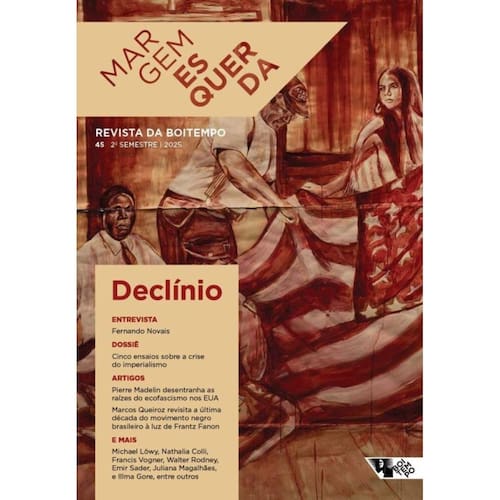 As guerras tarifárias de Trump colocaram o Brasil no centro de um debate sobre imperialismo contemporâneo, soberania e os rumos da extrema direita global. Mas quanto há de método e quanto há de desespero nas bravatas do magnata em seu retorno à presidência dos Estados Unidos? Qual é o lugar dos EUA no tabuleiro geopolítico? O termo imperialismo ainda carrega poder explicativo nesse quadro? A quantas anda a relação entre Estados nacionais e corporações transnacionais diante da ascensão das big techs? Como interpretar o caldo de conflagração social desse hegemon em declínio ainda assombrado pela desindustrialização? Essas são algumas das questões enfrentadas pelo dossiê de capa desta Margem Esquerda, coordenado por Luiz Felipe Osório e Tiago Ferro. O entrevistado desta edição é o mais importante historiador marxista em atividade no Brasil hoje. Fernando Novais repassa sua trajetória intelectual e discute os atuais desafios historiográficos do materialismo histórico. Na seção de artigos, Marcos Queiroz faz um balanço da última década do movimento negro brasileiro à luz da obra de Frantz Fanon; Nathalia Colli escreve sobre a trilogia da vida operária de Roniwalter Jatobá; Pierre Madelin pensa a atualidade do conceito de ecofascismo diante da ascensão da extrema direita mundial. A trajetória exemplar de Amílcar Cabral é tema de um poderoso discurso de Walter Rodney recuperado na seção Documento . Francis Vogner dos Reis assina uma comovente anti-homenagem ao espírito crítico de Jean-Claude Bernadet e Emir Sader presta tributo ao humanismo de Pepe Mujica. Quatro publicações recentes são foco de apreciações críticas de Natan Oliveira, Frederico Daia Firmiano, Matheus Camargo Jardim e Cecília Brancher Oliveira: O essencial de Marx e Engels, organizado por Marcello Musto, A educação ambiental anticapitalista, de Henrique Novais, Imediatez: ou o estilo do capitalismo tardio demais, de Anna Kornbluh, e Pensar após Gaza, de Franco Bifo Berardi. Com ensaio visual da artista plástica australiana Illma Gore e poesia do cantor e compositor Woody Guthrie, a edição conta ainda com ensaios de Michael Löwy e Juliana Paula Magalhães.