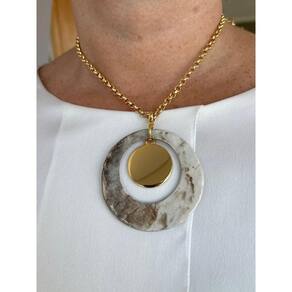 Colar Serene com design autoral produzido artesanalmente em porcelana de alta temperatura, esmaltada, montada em suporte de corrente elo português grossa de 8mm e banhada a ouro com aplicação de verniz especial.
