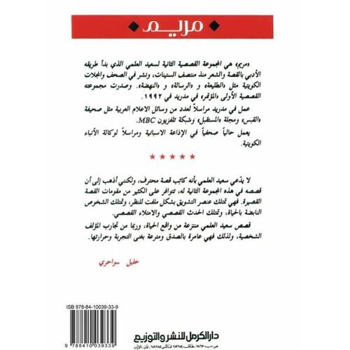 "Mariam" es la segunda colección de cuentos de Saïd Al-Alami, quien comenzó su carrera literaria con cuentos y poesía a mediados de los años sesenta, y fue publicada en periódicos y revistas kuwaities como Al-Taliah, Al-Resala y Al-Nahda. Su primera colección de cuentos, "La Conferencia", se publicó en Madrid en 1992.Trabajó en Madrid como corresponsal de diversos medios de comunicación árabes, como el periódico Al-Qabas, la revista Al-Mustaqbal y la cadena de televisión MBC.Actualmente trabaja como periodista en la radio española y corresponsal de la Agencia de Noticias de Kuwait.Saïd Al-Alami no pretende ser un escritor de cuentos profesional, pero creo que los cuentos de esta segunda colección tienen muchos de los elementos de un cuento. Tiene un sorprendente elemento de suspenso, tiene personajes vibrantes y tiene acción narrativa y plenitud narrativa.Las historias de Saïd Alami están tomadas de la vida real y quizás de las experiencias personales del autor y, por lo tanto, están llenas de honestidad y llenas de la riqueza y calidez de la experiencia.Khalil Sawahri Marca: BIBLIOMANAGER