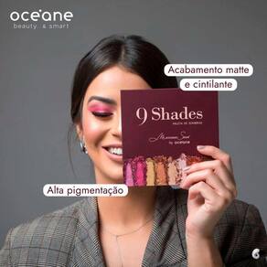 Paleta com 9 sombras de acabamento matte e cintilante. Mariana Saad by Océane 9 Shades possui cores com alta pigmentação e fixação, selecionadas em conjunto com a influencer Mari Saad e que seguem as tendências de maquiagem.
