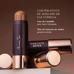 - O Contour Stick contém ativos de skincare em sua fórmula, uma tendência em produtos de maquiagem. Com Cera de Candelila que ajuda a manter a hidratação da pele, e Óleo de Semente de Jojoba, que contribui para hidratação e suavidade da pele, esses ativos ajudam na fixação do contorno por mais tempo.