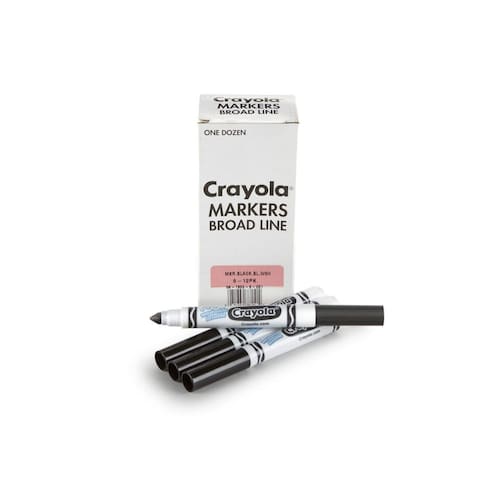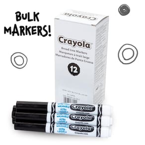 Marcadores laváveis Crayola — pretos (12 quilates), marcadores de linha larga para crianças, marcadores a granel para salas de aula e professores — MARCADORES CRAYOLA PRETOS: incluem 12 marcadores Crayola laváveis em preto crayola clássico. - MARCADORES LAVÁVEIS: os marcadores laváveis Crayola são convenientemente lavados da pele, das paredes e da maioria das roupas laváveis. - MARCADORES DE LINHA AMPLA: Os marcadores Crayola Broad Line têm pontas cônicas resistentes que os tornam ideais para uma variedade de projetos. Ótimos para colorir em grandes áreas, esses marcadores também funcionam bem para desenhar linhas ou pontos finos. - FÓRMULA À BASE DE ÁGUA: As cores brilhantes dos marcadores da Crayola são à base de água e não vazam pelo papel comum. - MATERIAL ESCOLAR: Prepare salas de aula e salas de artesanato com material escolar criativo para projetos de artesanato e arte. As cores dos marcadores em massa são perfeitas para professores que desejam garantir que cada criança tenha o material de arte de que precisa. - SEGURO E NÃO TÓXICO: Todos os marcadores Crayola são seguros e não tóxicos para crianças de 3 anos ou mais.