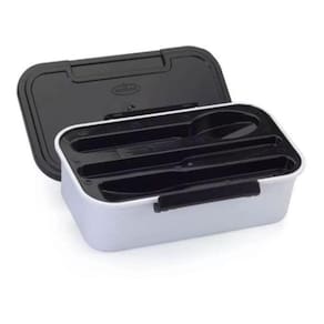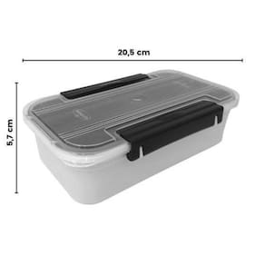 A Marmita com porta talheres e travas 780ml plástico Preto é tudo o que você precisa com um design alegre para todos os momentos. Fabricada em material resistente, ela trará mais praticidade no seu dia a dia, pois pode ir ao freezer e ao micro-ondas, facilitando a hora do seu almoço no trabalho ou em qualquer lugar que você esteja. Além de possuir uma tampa intermediária que separa o alimento dos talheres e uma tampa externa com travas, que envolve as partes inferiores hermeticamente. Informações importantes; Medidas aproximadas - 20,5 x 12,5 x 5,7cm Comprimento x largura x altura Medidas aproximadas do porta talher - 19,4 x 11,1 x 2cm Comprimento x largura x altura Capacidade -780ml Composição - Polipropileno
