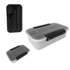 Marmita Com Compartimento de Talheres 780ml Multiuso Preto Marmita Com Porta Talheres E Travas 780Ml Plástico Preto
