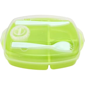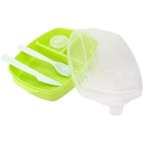 A Marmita Para Microondas Com Talheres tem divisória que permitem que você possa levar qualquer tipo de alimento para diversos lugares, pois além de ser muito resistente, é compactada e cabe na bolsa. Feito em plástico resistente, aguenta altas e baixas temperaturas resistindo a uma variação térmica podendo ser levado ao micro-ondas e freezer. Além disso, a marmita conta com uma tampa de plástico polietileno com quatro travas junto a um anel de silicone removível que trabalham para que o pote não absorva o cheiro dos alimentos e que não haja nenhum tipo de vazamento. Contém: 01 Marmita Com Talheres 22,5x16,5x6,5cm CK1671 Clink Dimensões: 22,5x16,5x6,5cm Material: Plástico