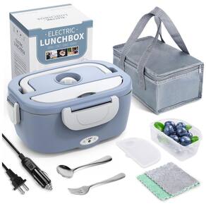LISTA DE PACOTESO aquecedor elétrico de lancheira inclui 1x lancheira elétrica 17x10,8x24 centimetros, 1x lancheira isolada, 1x compartimento adicional de plástico, 1x anel de vedação à prova de vazamento, 1x colher e garfo de aço inoxidável, 1x 304 inoxidável caixa interna de aço, 1x pano de prato, 1x cabo de alimentação 12V para carros, caminhões, 1x 110V para uso doméstico, escritório. Capacidade 1,5L.