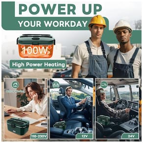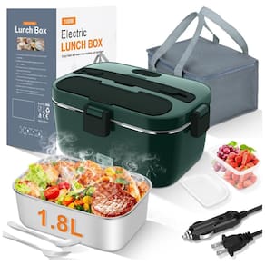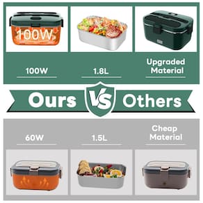 Lancheira elétrica 3 em 1 Você está sempre ocupado e precisa comer comida fria A partir de agora, com a nossa lancheira elétrica, poderá desfrutar de refeições quentes a qualquer hora e em qualquer lugar Esta lancheira elétrica aquecida suporta 110 V em casa, escritório 12 V em carro e 24 V em caminhão. Você vai adorar esta lancheira aquecida. Aquecimento rápido de 60W Nossa lancheira de aquecimento elétrico usa uma fonte de alimentação atualizada de 60W para aquecimento. Uma vez conectada, a lancheira de aquecimento aquecerá em 25 a 35 minutos. Esta lancheira para aquecimento de alimentos foi projetada com calor circulante para manter sua comida nutritiva e fresca. Ele não apenas aquece suas refeições rapidamente, mas também é fácil de limpar e pode ser lavado na lava louças. Design à prova de vazamento para vocêPara tornar a lancheira mais quente e melhor vedada, projetamos quatro encaixes laterais, além da vedação de borracha embutida, você não precisa mais se preocupar com vazamento de sopa. Perfeito para funcionários de escritório da empresa , pedreiros, caminhoneiros e outros que queiram carregar o almoço sozinhos. 1.8L Capacidade super grande Recipiente de aço inoxidável de 1.8L de grande capacidade, você não precisa ficar com fome. Nossa lancheira aquecedora de alimentos é perfeita para você Além disso, fornecemos um compartimento de plástico de 0,45L para que você possa colocar diferentes tipos de alimentos separadamente. Tem garfo e faca na tampa, você também pode usar como suporte de celular para assistir filmes enquanto come. Refeições quentes e saudáveis Por favor, não lave a lancheira elétrica como um todo na água. A lancheira aquecida portátil vem com um saco de isolamento, não precisa se preocupar com chuva forte e poeira, você pode carregar a lancheira facilmente. Se o alimento foi retirado da geladeira, o tempo de aquecimento deve ser estendido adequadamente