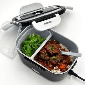 Design compacto e portátil, perfeito para transporte em mochilas ou bolsas térmicas. Compartimentos internos para separar diferentes tipos de alimentos. Tampa com quatro travas de segurança para evitar vazamentos. Saída de vapor para liberação durante o aquecimento. Porta-talher com colher inclusa para consumo direto na marmita. Fabricada em plástico resistente com componentes metálicos e eletrônicos de qualidade. Alça de transporte para maior conforto e segurança no uso diário.Lâmpada piloto