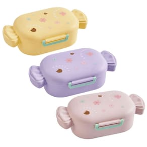 Características: - Material: Plástico - Acompanha 1 colher e 1 garfo - Formato: Bala - Cores: Lilás - Amarelo - Rosa Claro - Medidas: Colher: 1,5cm (Largura) x 14cm (Comprimento) - Medidas: Garfo: 1,5cm (Largura) x 14cm (comprimento) - Medidas: Divisória 1: 7,5 cm (Largura) x 7,5cm (Comprimento) - Medidas: Divisória 2: 12cm (Largura) x 12cm (Comprimento) - Lancheira Medida Total: 7,5cm (Altura) x 14,5cm (Largura) x 25,5cm (Comprimento)